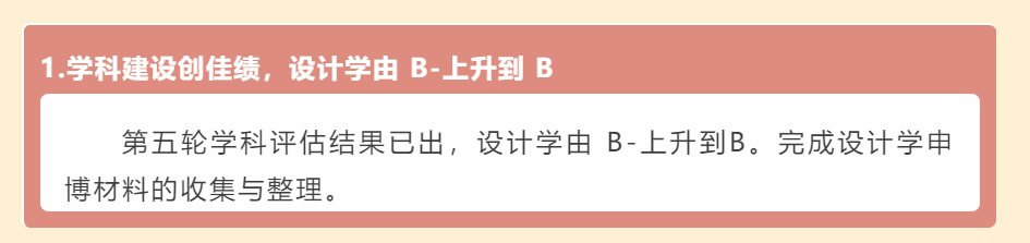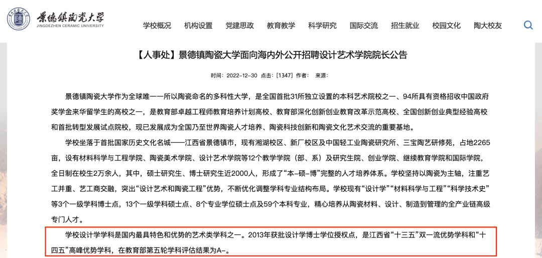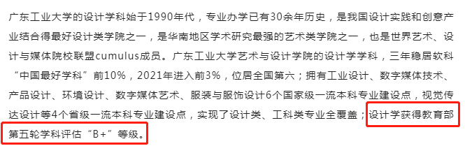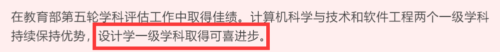 江南大學(xué)設(shè)計學(xué)院在微信公眾號上發(fā)文,在教育部第五輪學(xué)科評估中,江南大學(xué)設(shè)計學(xué)科位列A+,取得歷史性突破。江南大學(xué)第四輪學(xué)科評估結(jié)果:設(shè)計學(xué)A-。1月15日,同濟(jì)大學(xué)副校長、原設(shè)計創(chuàng)意學(xué)院院長婁永琪教授在同濟(jì)大學(xué)第八屆國際青年學(xué)者論壇設(shè)計學(xué)分論壇的校領(lǐng)導(dǎo)致辭環(huán)節(jié)透露設(shè)計學(xué)在最新一輪學(xué)科評估中取得最高檔,即A+。同濟(jì)大學(xué)第四輪學(xué)科評估結(jié)果:設(shè)計學(xué)A12月30日,景德鎮(zhèn)陶瓷大學(xué)透露該校設(shè)計學(xué)科在第五輪學(xué)科評估中獲得A-。景德鎮(zhèn)陶瓷大學(xué)第四輪學(xué)科評估結(jié)果:設(shè)計學(xué)B+2月12日,廣東工業(yè)大學(xué)藝術(shù)與設(shè)計學(xué)院在官方公眾號上透露:設(shè)計學(xué)獲得教育部第五輪學(xué)科評估“B+”等級。廣東工業(yè)大學(xué)第四輪學(xué)科評估結(jié)果:設(shè)計學(xué)B。1月18日,武漢紡織大學(xué)藝術(shù)與設(shè)計學(xué)院透露設(shè)計學(xué)由B-上升到B,完成設(shè)計學(xué)申博材料的收集與整理。武漢紡織大學(xué)第四輪學(xué)科評估結(jié)果:設(shè)計學(xué)B-12月31日,四川美術(shù)學(xué)院透露該校在第五輪學(xué)科評估中取得優(yōu)異成績,學(xué)科建設(shè)躍上新臺階。四川美術(shù)學(xué)院第四輪學(xué)科評估結(jié)果:美術(shù)學(xué)A-、設(shè)計學(xué)B+、藝術(shù)學(xué)理論C+、戲劇與影視學(xué)C— 設(shè)計學(xué)、美術(shù)學(xué)均有躍升 —