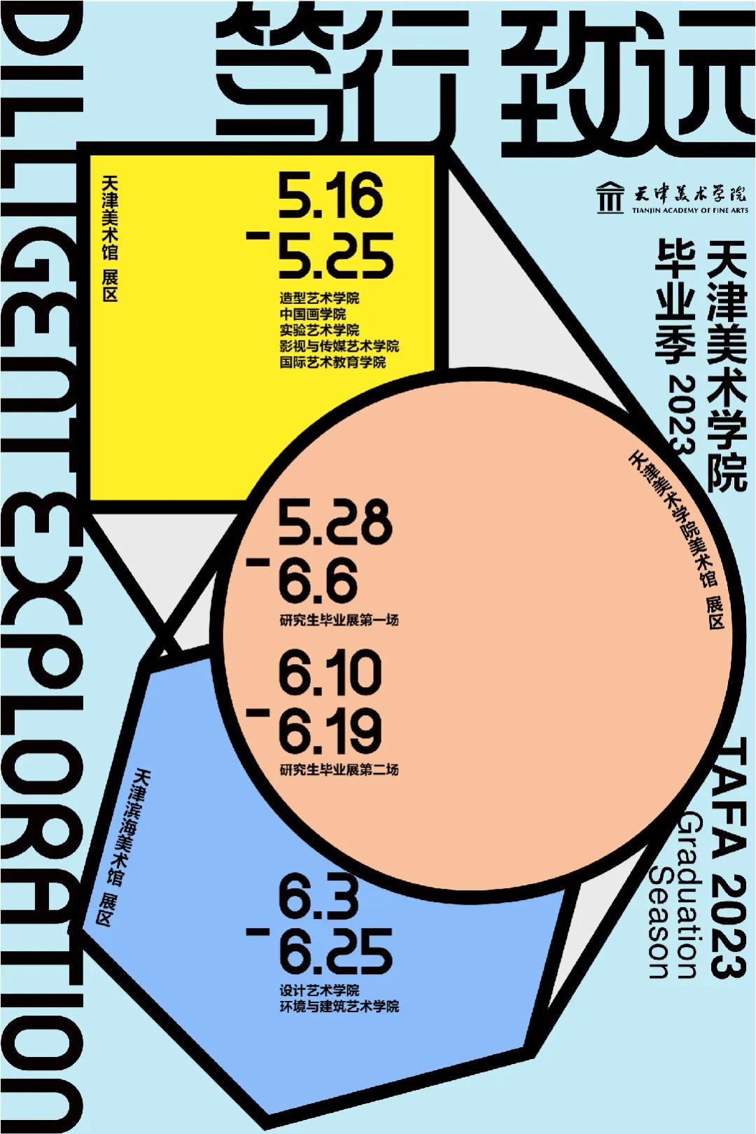 全城“藝”啟2023天津美院畢業(yè)季!三區(qū)聯(lián)動,三館開展,點贊創(chuàng)意無限,增色美麗津城,共享文化盛宴,繪就時代之美!2023屆畢業(yè)生畢業(yè)展以“篤行·致遠”為題,分別在天津美術(shù)館、天津濱海美術(shù)館、天津美術(shù)學院美術(shù)館展出,共展出969名本科生和280名研究生的3000余件畢業(yè)作品,天美學子以油彩描摹遠山滄海,以筆墨書寫胸中意氣,以金石鐫刻古今烙印,以華服織就天馬行空,以科技點亮藝術(shù)之光,以設計展現(xiàn)時代新象!