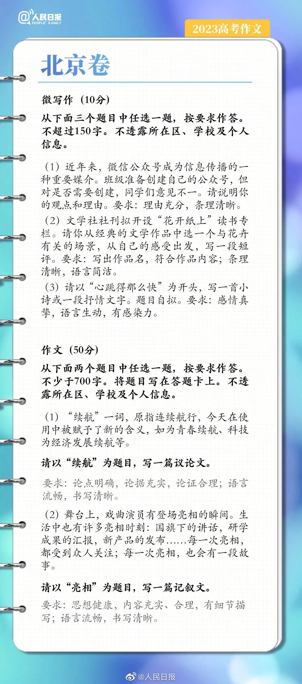 匯總2023全國各卷語文作文試題↓你覺得哪卷最簡單?